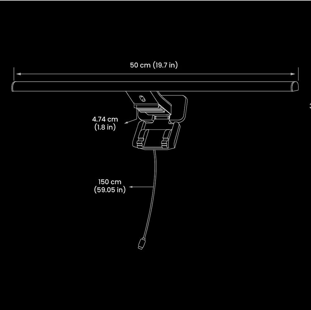 ScreenBar Halo 2可相容螢幕厚度0.43-6cm,曲率範圍為1000R至1800R之螢幕。