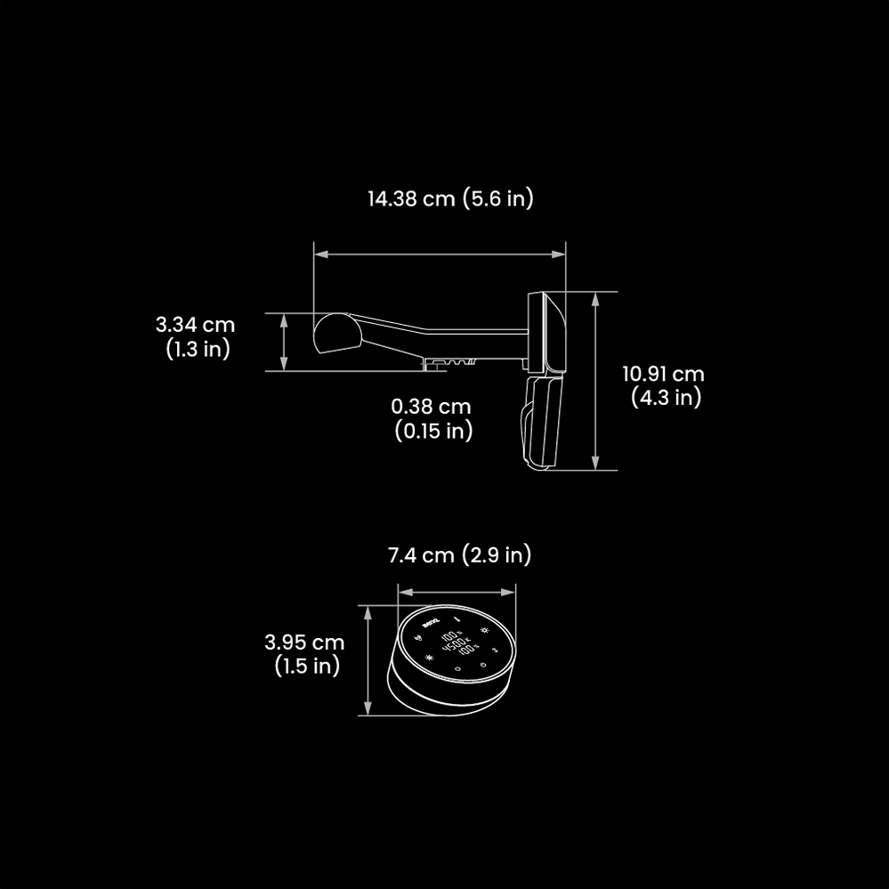 15度傾斜設計,透過LED面板顯示亮度及色溫。前後光的亮度&色溫可以獨立調整,可充電的鋰電池無線控制器,單次充電可持續使用長達3個月。