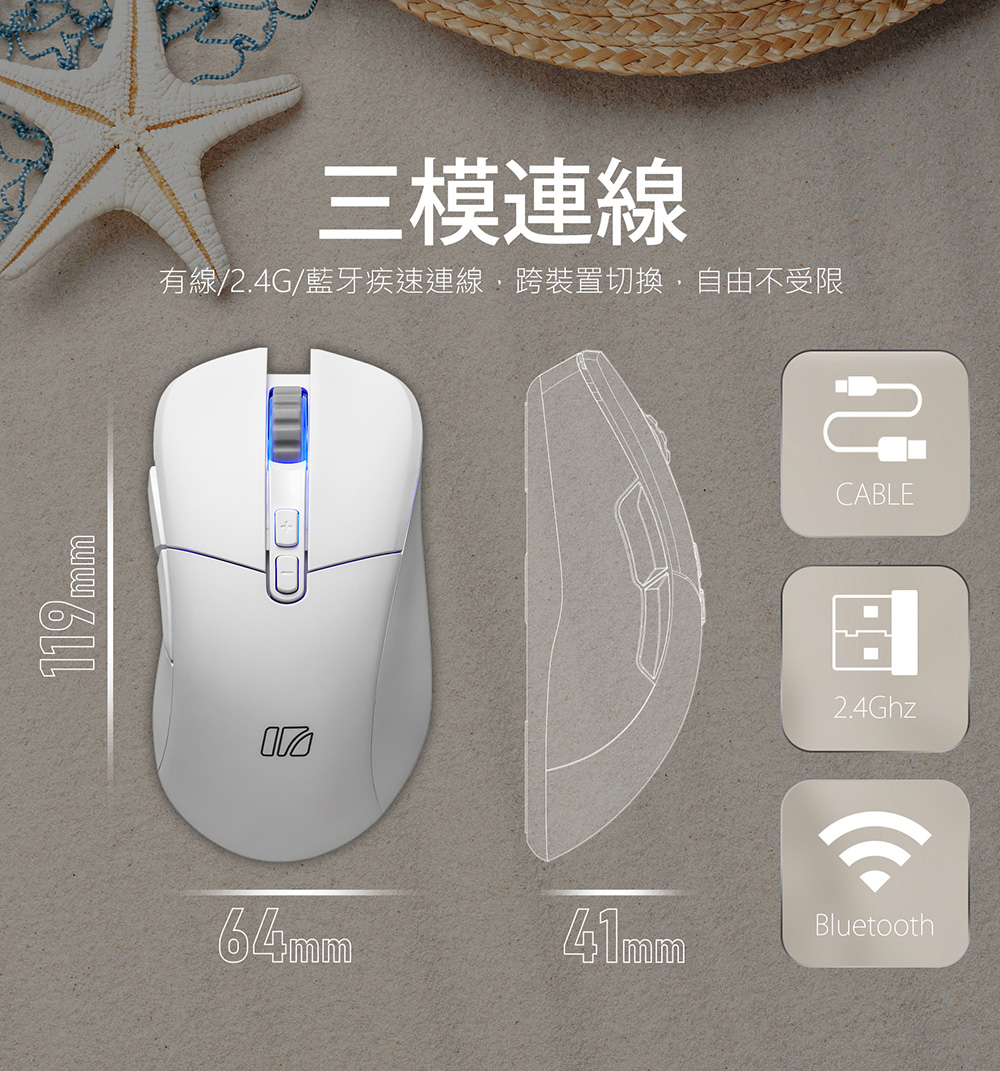 | 介面 | 有線USB/ 2.4GHz/藍牙5.2 |