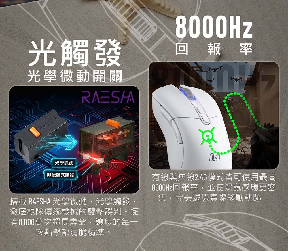 |光微動開關,耐用8000萬次(光軸品牌:RAESHA)
