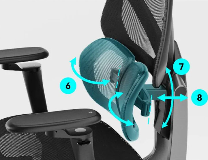 .全方位8D動態自動調節頭枕、椅背與腰部支撐