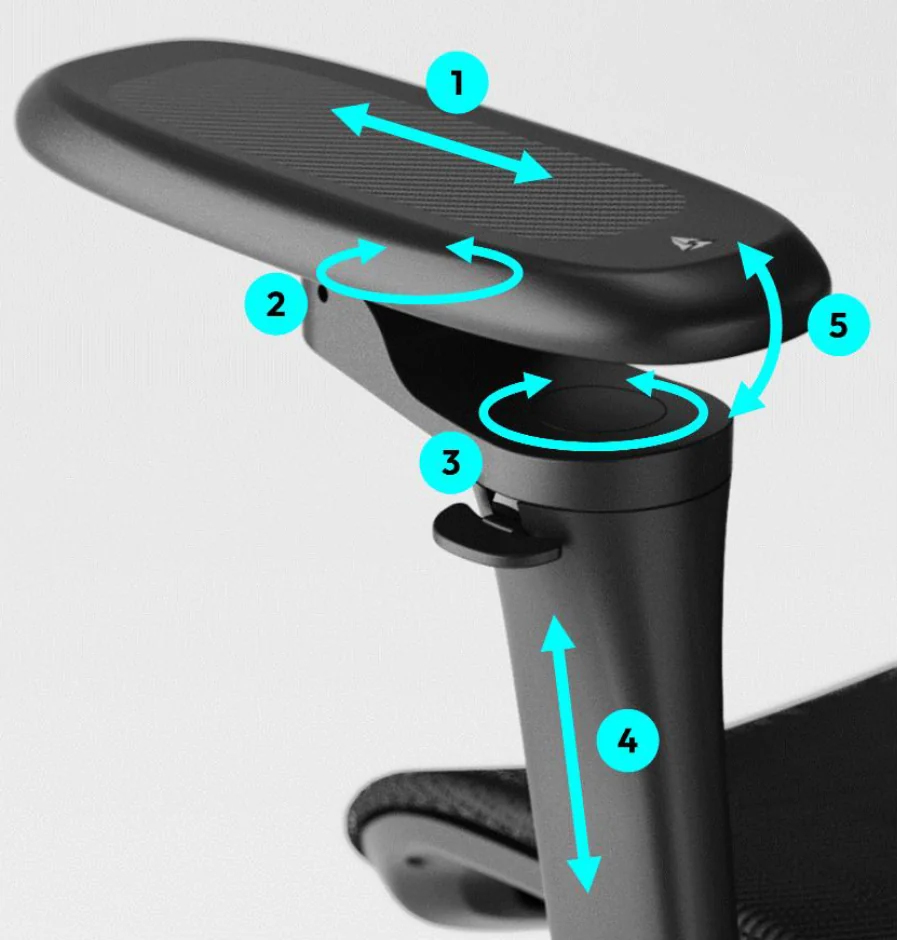 為手臂帶來無與倫比的自由度 現在,你可以體驗到能完美貼合手臂位置與角度的創新扶手設計。它可上下、前後調整,還能傾斜,甚至支援360°全方位旋轉,讓你再也不必擔心上半身姿勢不自然,享受全面舒適的支撐體驗。