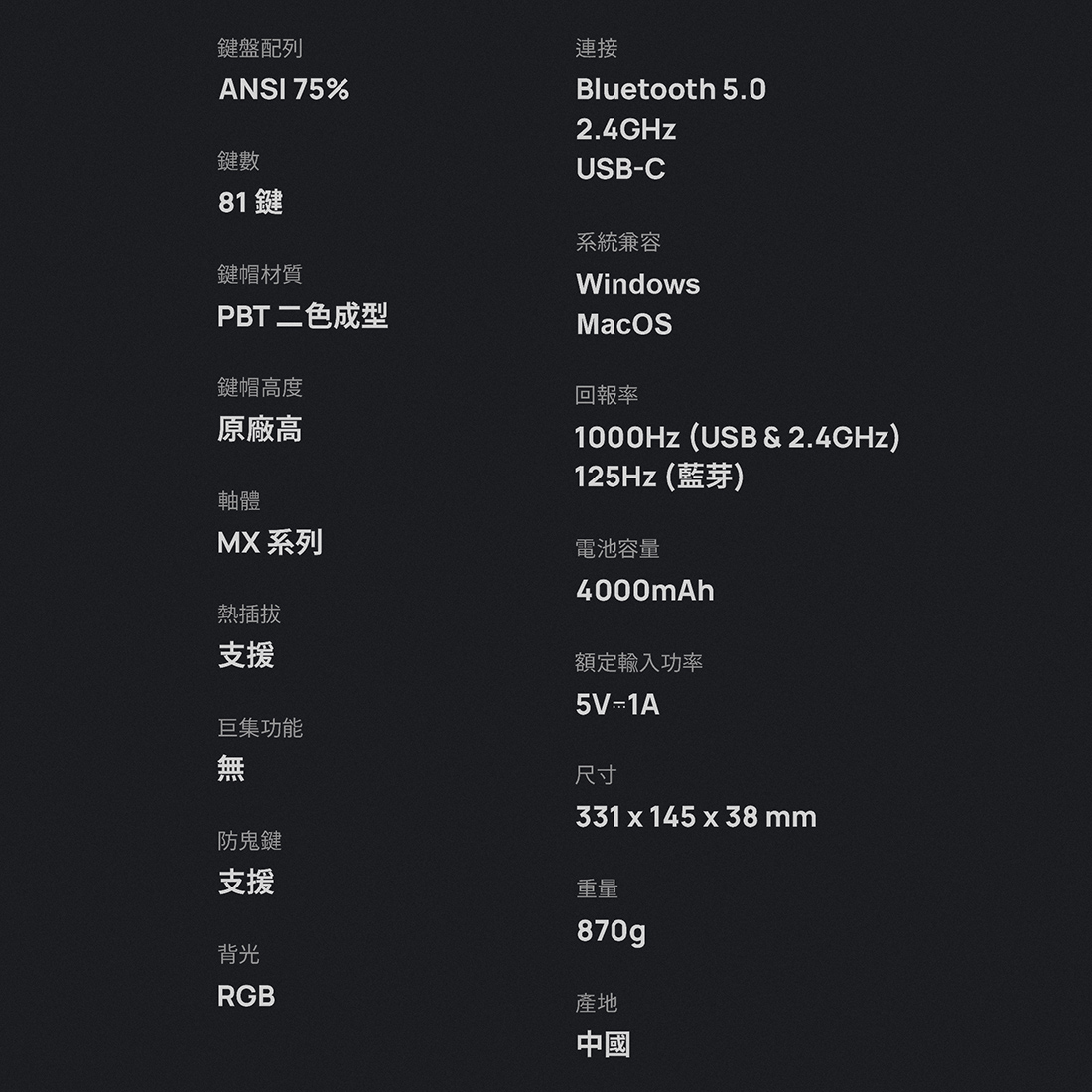 - Model: 無線三模機械鍵盤