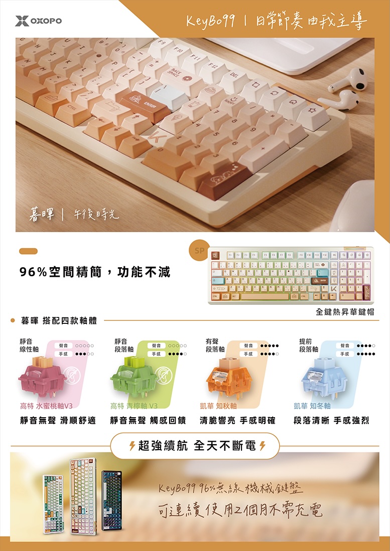 品名OXOPO KeyBo99 96%無線機械鍵盤