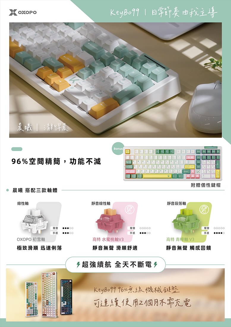 | 品名 | OXOPO KeyBo99 96%無線機械鍵盤 |